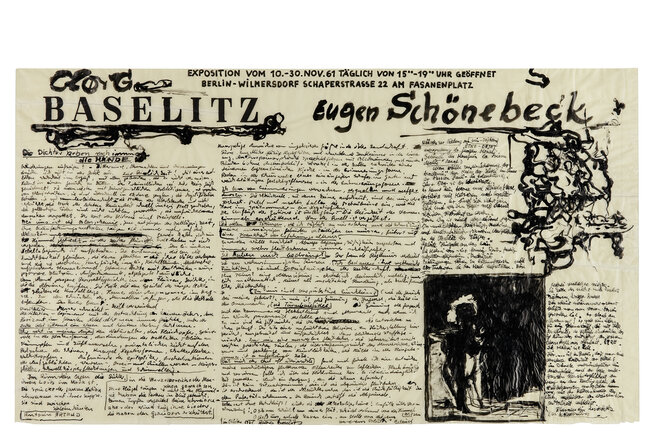 Baselitz entscheidet sich Anfang der 1960er-Jahre bewusst für die Figuration – eine Entscheidung, die in einer Zeit, in der die abstrakte Kunst dominiert, als Provokation empfunden wird. Damit schlägt der Künstler nicht nur neue Wege in der Malerei ein, sondern er schreibt sich als Erneuerer der Nachkriegskunst in die Kunstgeschichte ein. Die Ausstellung im Rupertinum legt den Fokus auf die frühen grafischen Arbeiten, in denen sich der Künstler mit deutscher Geschichte, Identität und dem Künstler-Ich auseinandersetzt. Dabei verknüpft er klassische Bildtraditionen mit einer kraftvollen, oftmals als roh und verstörend empfundenen Bildsprache. Die thematische Gliederung orientiert sich erstmals an vier Manifesten, die der Künstler in den 1960er-Jahren verfasst hat.