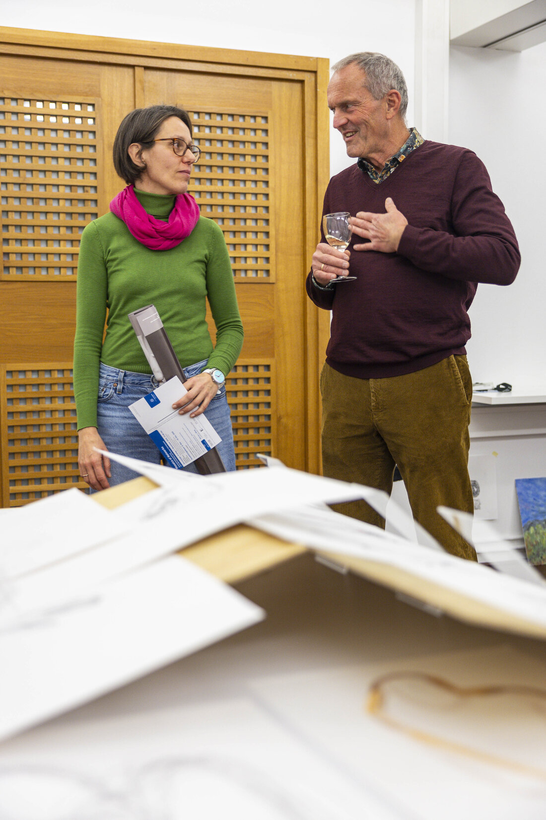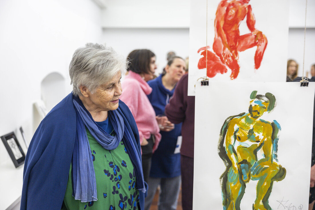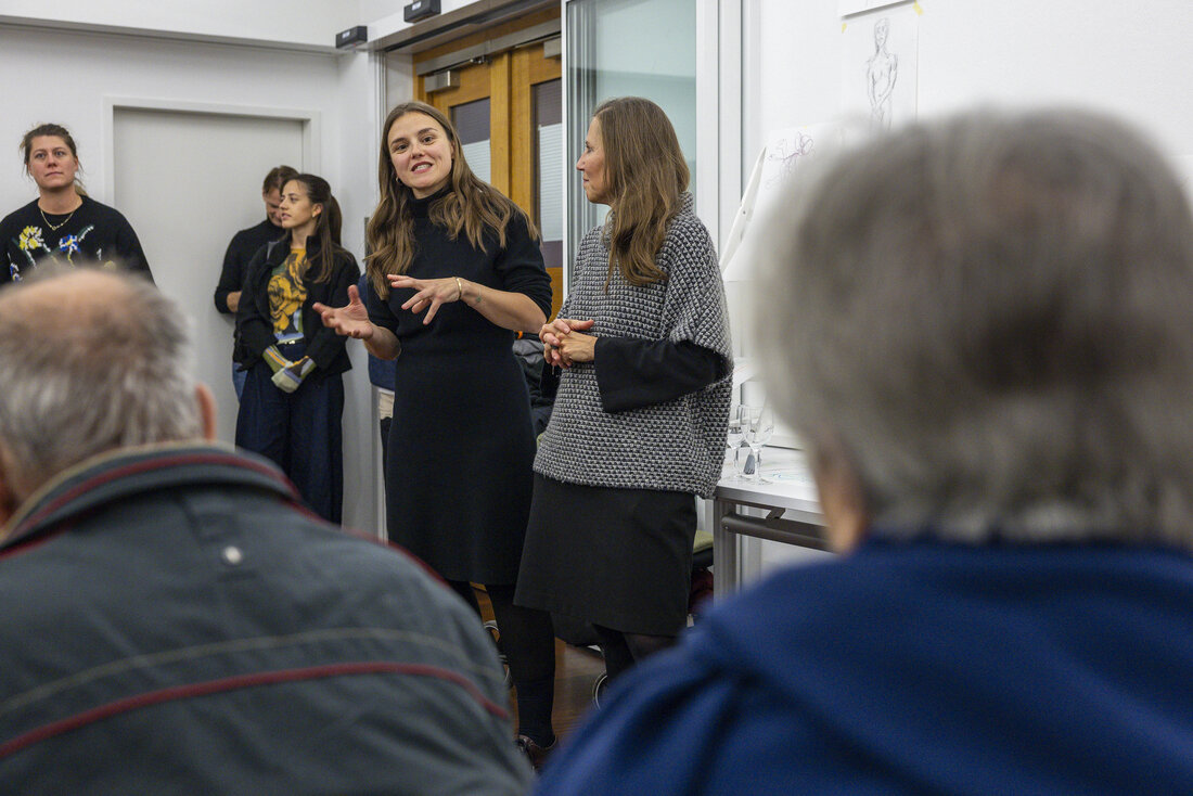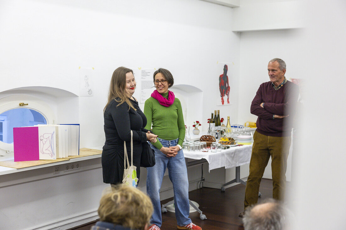 Die beiden Workshop-Formate Friday Sketching und Abendma(h)l im Museum der Moderne Salzburg bieten seit sechs Jahren die Möglichkeit ins kreative Tun einzutauchen. Eine Auswahl an Werken, die in den vergangenen Jahren in den Workshops entstanden sind, wurden vom 7. bis 16. November 2025 im OK-Loft in der Altstadt präsentiert. Unter dem Motto „Gemeinsam Schauen“ wurde die Werkschau in Anwesenheit vieler Workshopteilnehmer:innen und interessierter Gäste eröffnet. Beim gemeinsamen Zurückerinnern an die Entstehungszusammenhänge der Zeichnungen und Malereien wurde die Vielfalt an Themen, Ausstellungen und Zugängen und der experimentelle Charakter der Formate sichtbar. Die Präsentation spiegelte zudem den individuellen Gestaltungsprozess der Teilnehmer:innen zwischen Figuration und Abstraktion wider.